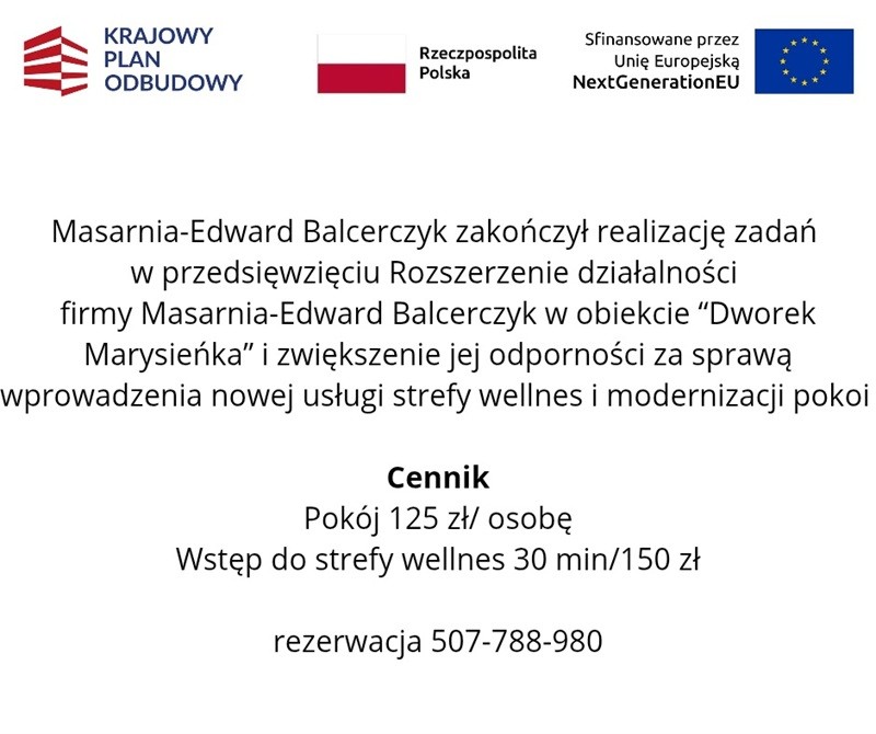 Drężek 2a 07-430 Myszyniec tel. 502-368-040 (w godz. 9-20) e-mail: dworekmarysienka@wp.pl Bank Spółdzielczy w Myszyńcu 52 8920 0001 0006 6354 3000 0010
